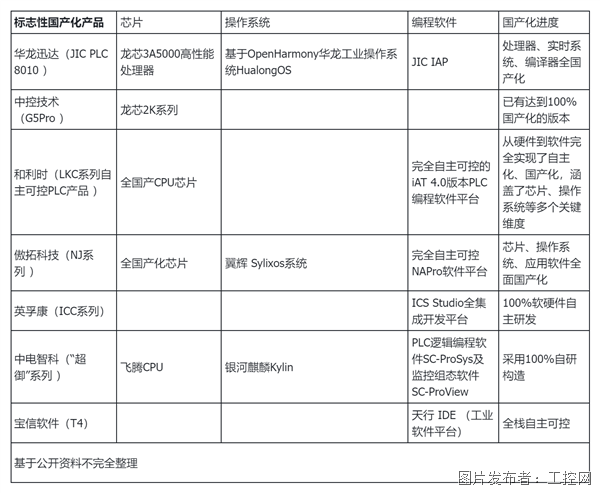 这场变革的核心,是从硬件到软件的全栈自研,我们总结了一下市面上大型PLC代表厂商的重点产品和国产化进展: