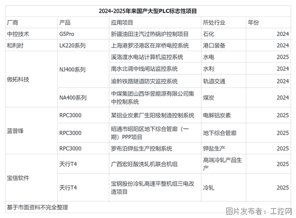 近两年,能源化工、市政、石油化学工业、水利水电等行业对国产大型PLC的接受度明显提升,并涌现出大量标杆项目: